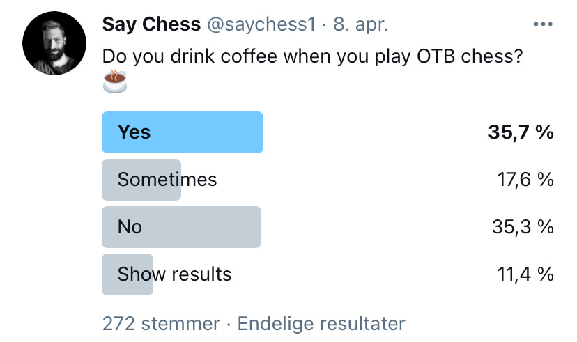 But why should chess players care? I asked on Twitter if people drink coffee while playing OTB chess.