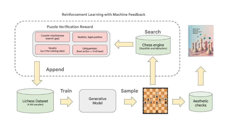 On the 27th of October, DeepMind, the creators of AlphaZero, shared an interesting paper (https://arxiv.org/html/2510.23881v1). They had succeeded in training a model that could compose rather creative chess puzzles.